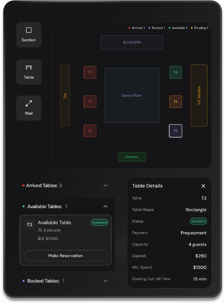 The better way to sell out tables with POS styled interface. Manage tables and sections with ease using PARDE’s interactive floor plans.