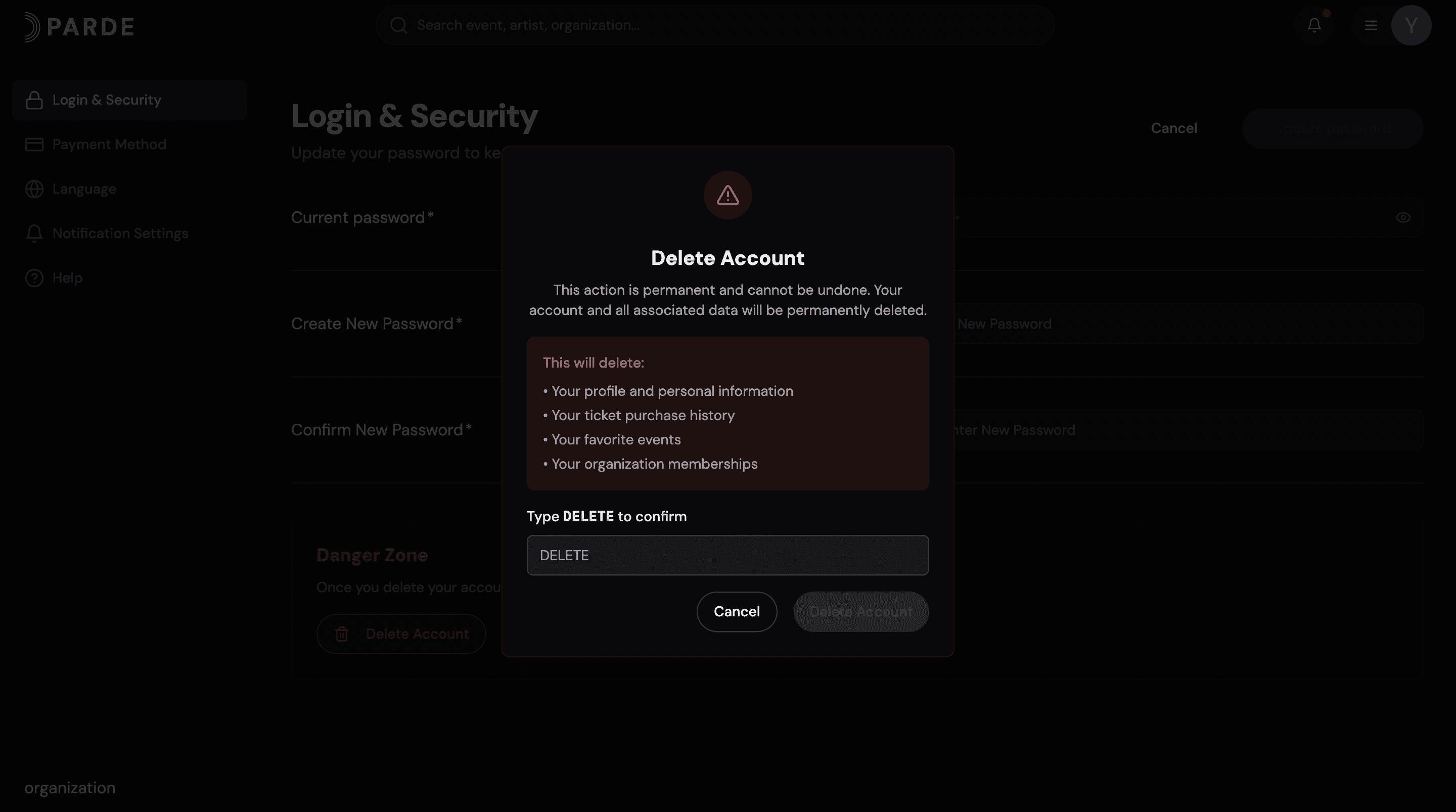 How to Delete your Parde account